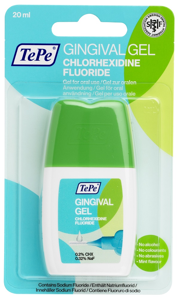 TePe Gingival Gel (20ml) combineert de voordelen van chloorhexidine en fluoride om de tanden en het tandvlees dubbel te beschermen.