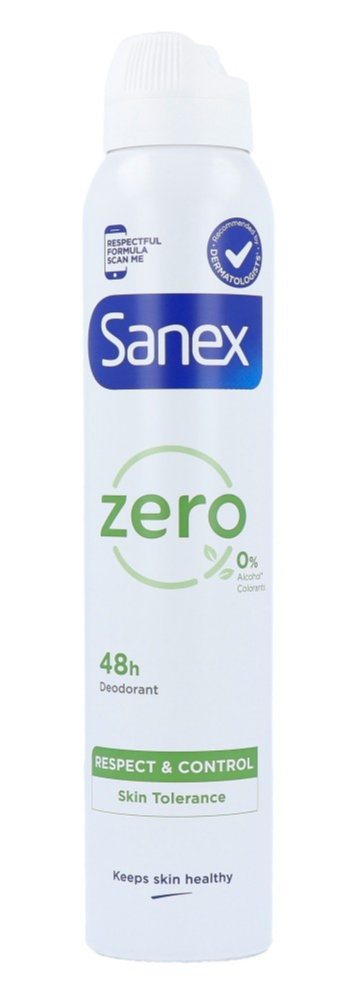 Deze unieke deodorantspray bevat 0% ethylalcohol en 0% aluminiumzouten en is daarmee geschikt voor de meest gevoelige huid. Sanex Respect & Control Zero Deospray is een essentiële deodorant die uw huid respecteert en beschermt tegen vervelende geurtjes.