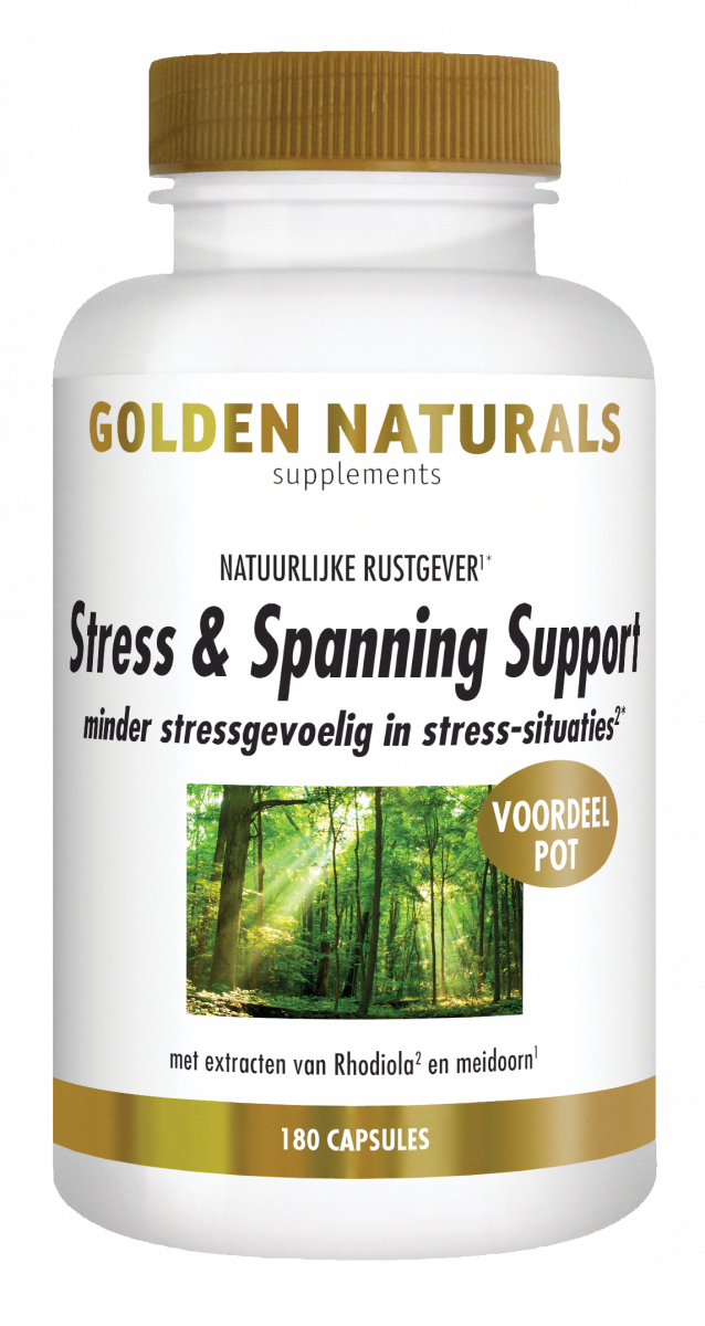 Daarnaast bevat het rozewortel dat ervoor zorgt dat u minder stressgevoelig bent*. Golden Naturals Stress & Spanning Support is een voedingssupplement op basis van meidoorn dat een natuurlijke rustgever is*.