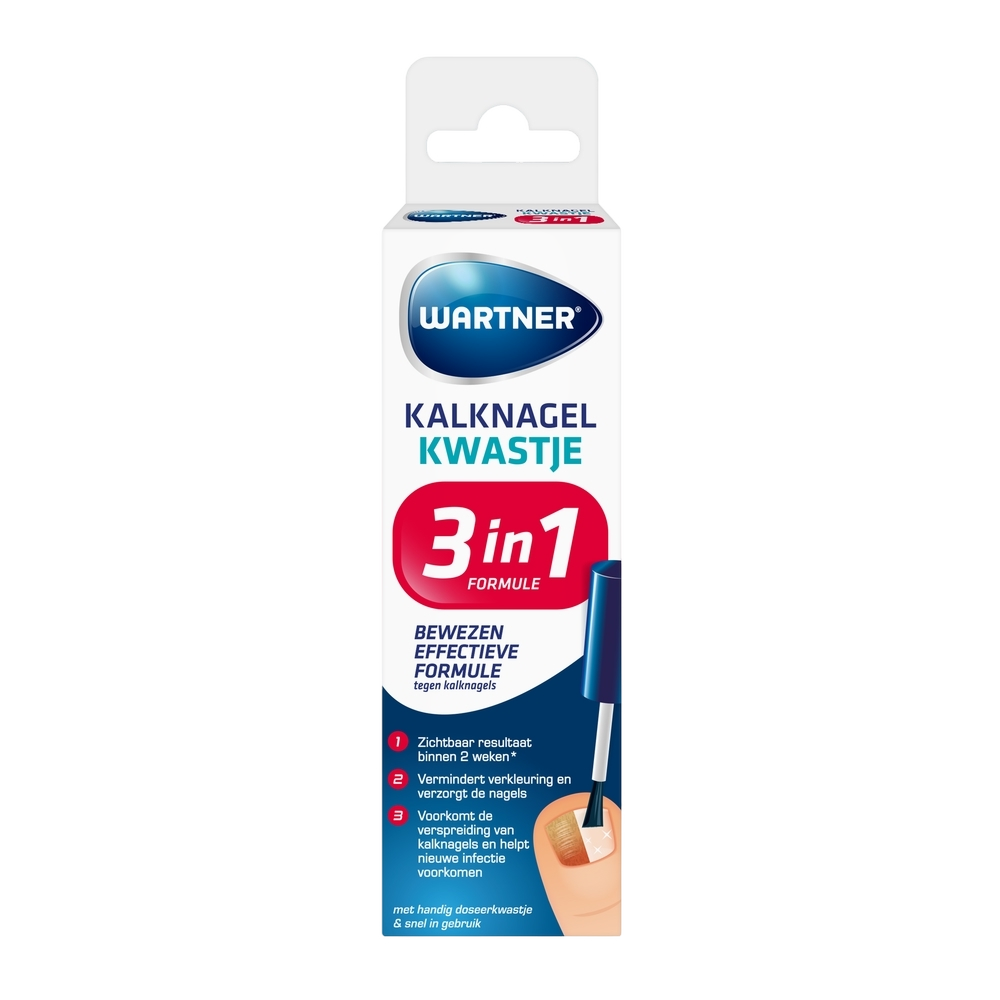 De 3-in-1 formule werkt effectief tegen kalknagels, vermindert verkleuring van de nagels en voorkomt verspreiding van de kalknagel. Wartner Kalknagelkwastje is een medisch hulpmiddel voor de behandeling van kalknagels en schimmelnagels.
