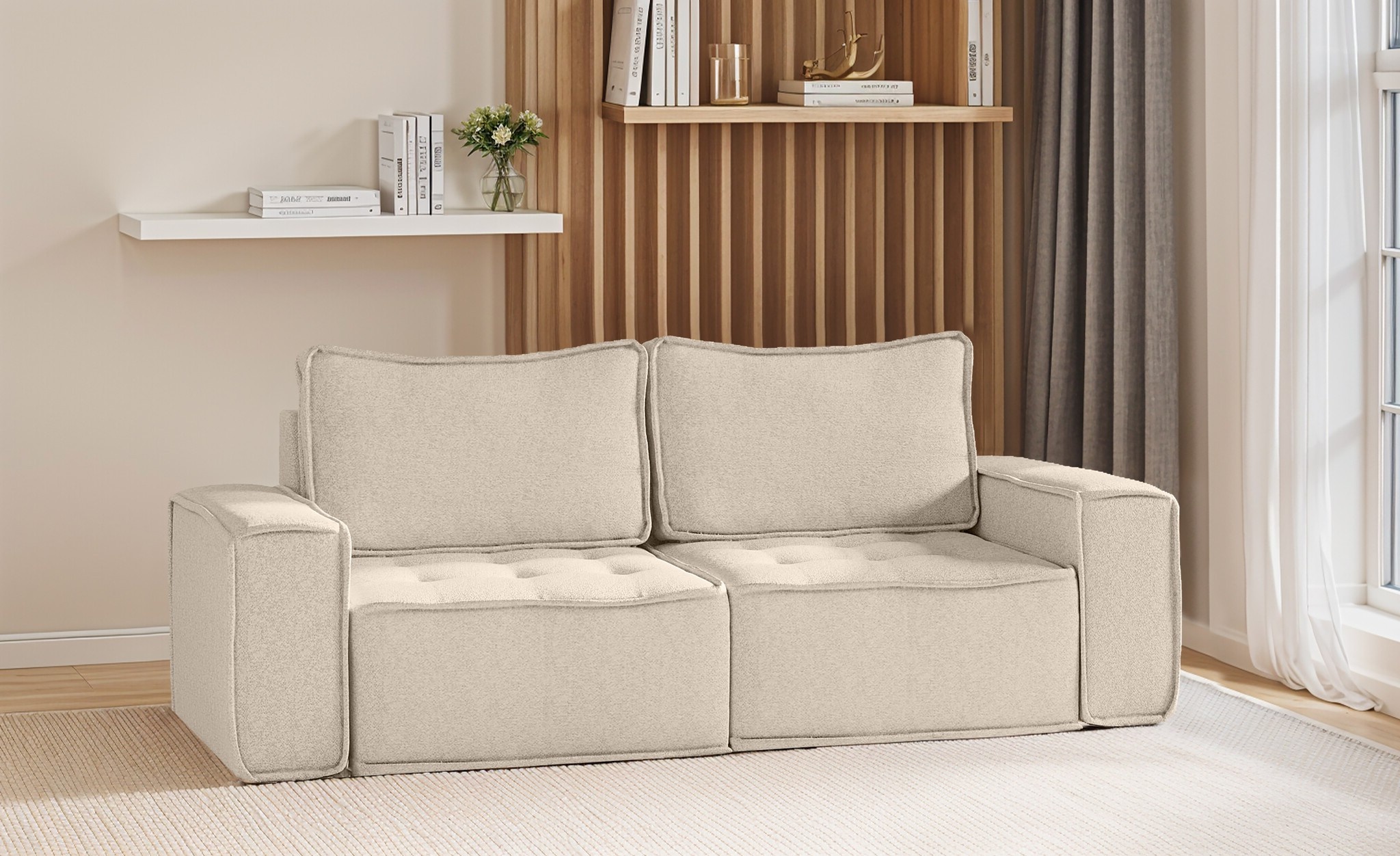 De brede armleuningen en compacte vorm maken deze bank geschikt voor diverse woonruimtes en interieurstijlen..