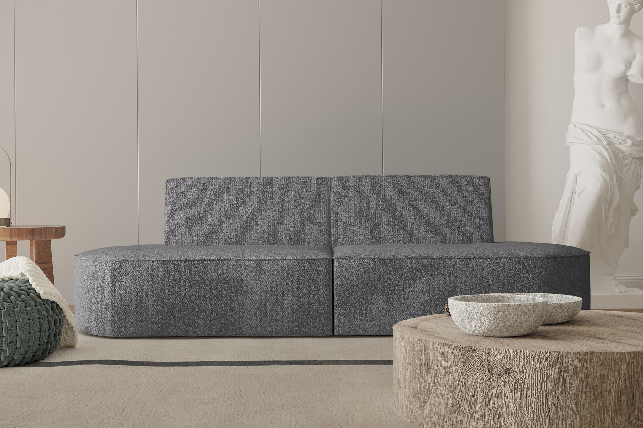 Zitbank Detroit heeft zachte, afgeronde vormen en een lage rugleuning voor een rustige en moderne uitstraling.
