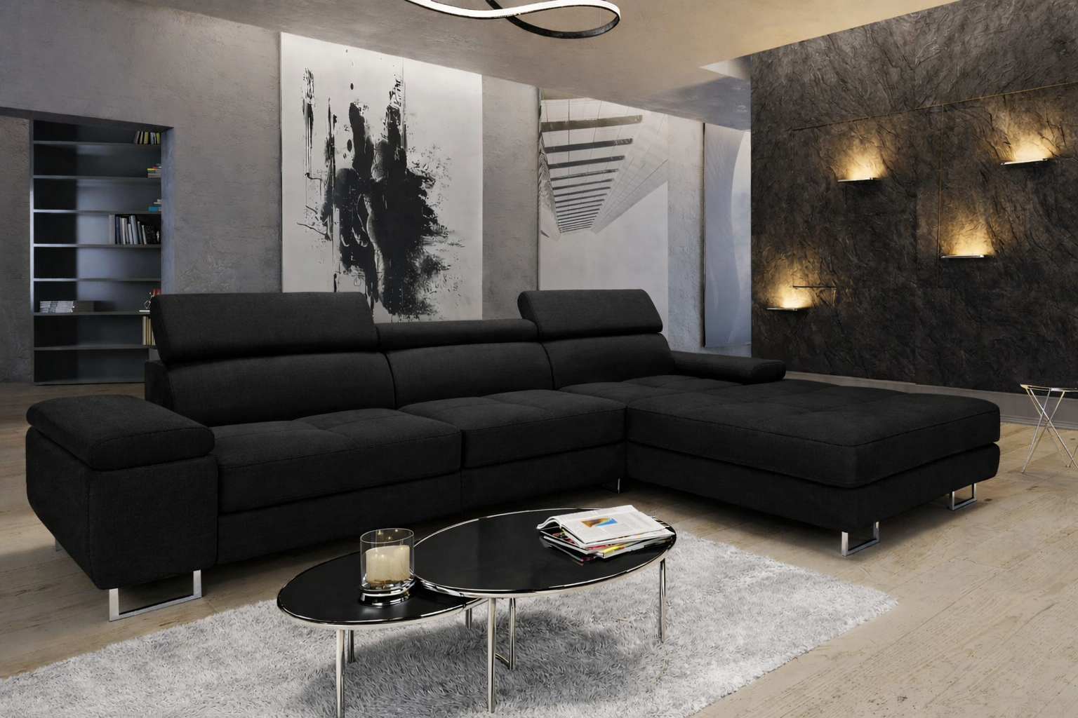 OP=OP Slaapbank met opbergruimte Sem | Zwart | Links | L-Hoekbank.