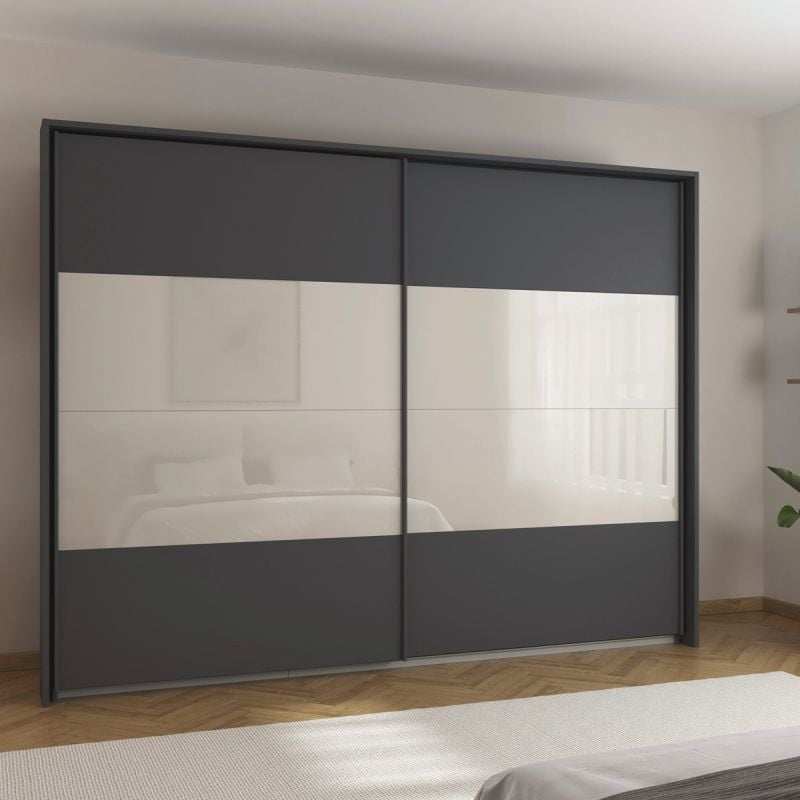 Kledingkast Quadro in grijs metallic en champagneglas is een echte blikvanger met een luxe uitstraling.