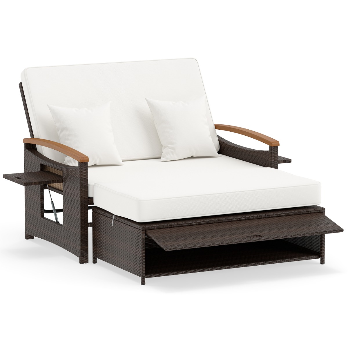 | Naam | Rieten Slaapbankenset Voor Terras 2-Zitsbank En Poef Met Opbergruimte Rugleuning Verstelbaar In 4 Standen En Opvouwbare Bijzettafels |