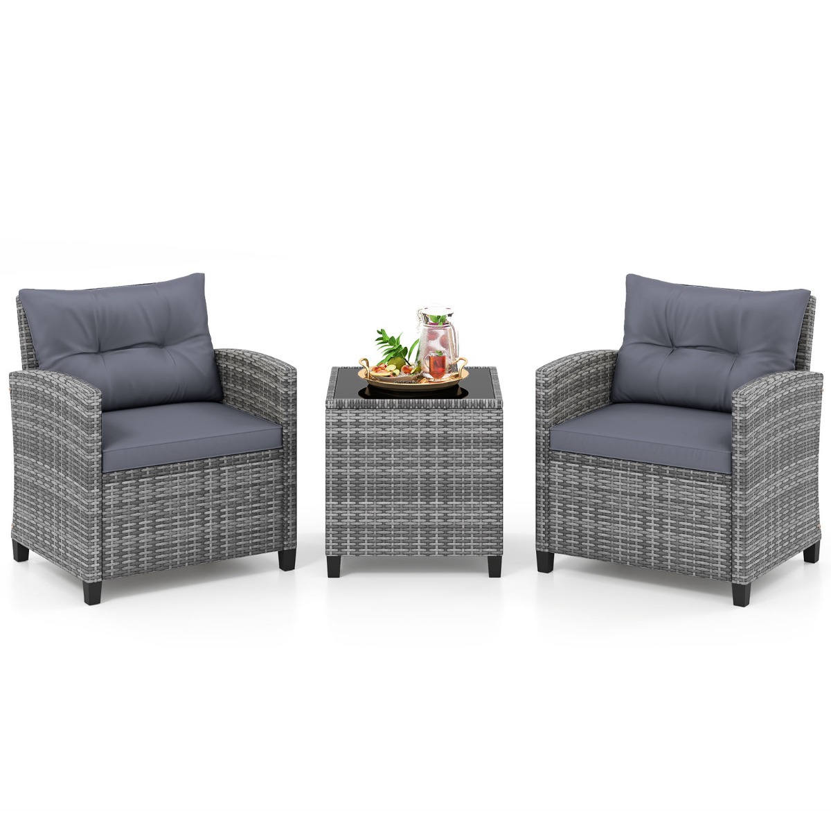 | Naam | 3-Delige Tuinmeubelset PE-Rotan Stoelen & Salontafel Met Gehard Glazen Blad Afneembare Kussens Conversatiemeubels Grijs |