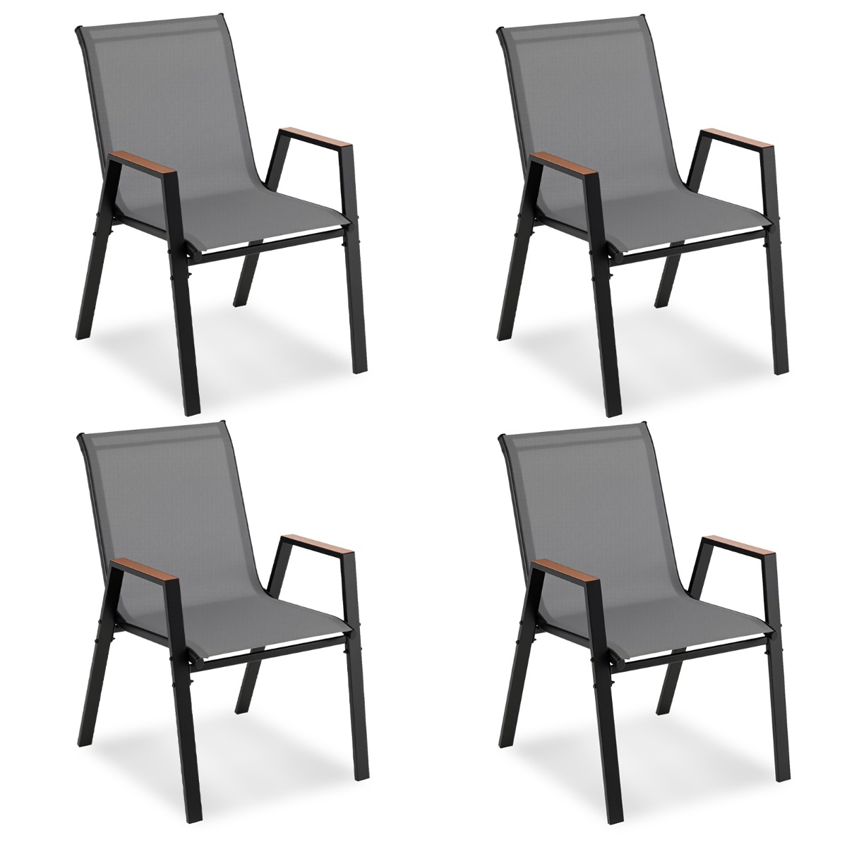 | Naam | Tuinstoelen Set Van 4 Stapelbare Stoelen Met Hoge Rugleuning Van Ademend Teslin-Weefsel Met Houten Armleuningen En Stabiel Metalen Onderstel |