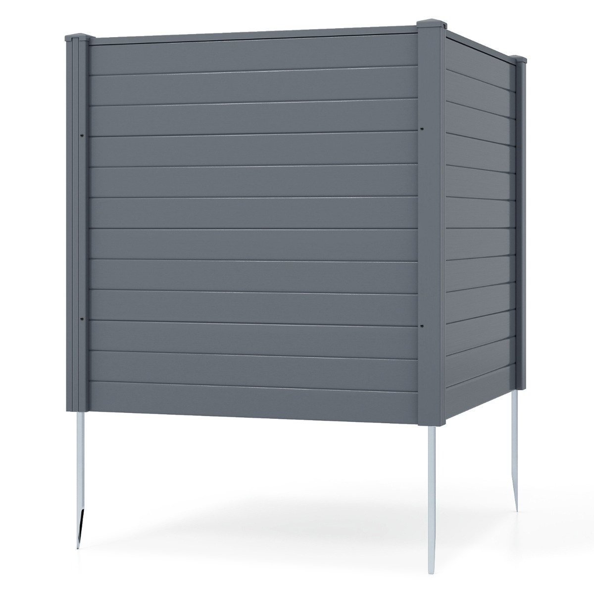 De palen reiken 30 cm diep in de grond en zijn geschikt voor verschillende grondsoorten, zoals zachte grond, grind en zand. Attributen: 【Verbeterde stabiliteit en windbestendigheid】: de zichtschermhek maakt gebruik van gegalvaniseerde metalen grondpennen in plaats van traditionele kunststof grondankers, waardoor directe installatie zonder graafwerkzaamheden mogelijk is. Hij is ideaal voor het afdekken van airconditioners, vuilnisbakken en zwembaduitrusting en kan ook worden gebruikt als tuinomheining of omheining voor huisdieren. De omheining bestaat uit flexibel te plaatsen elementen van elk 123 x 123 cm, die kunnen worden uitgebreid om grotere zichtschermen te creëren.