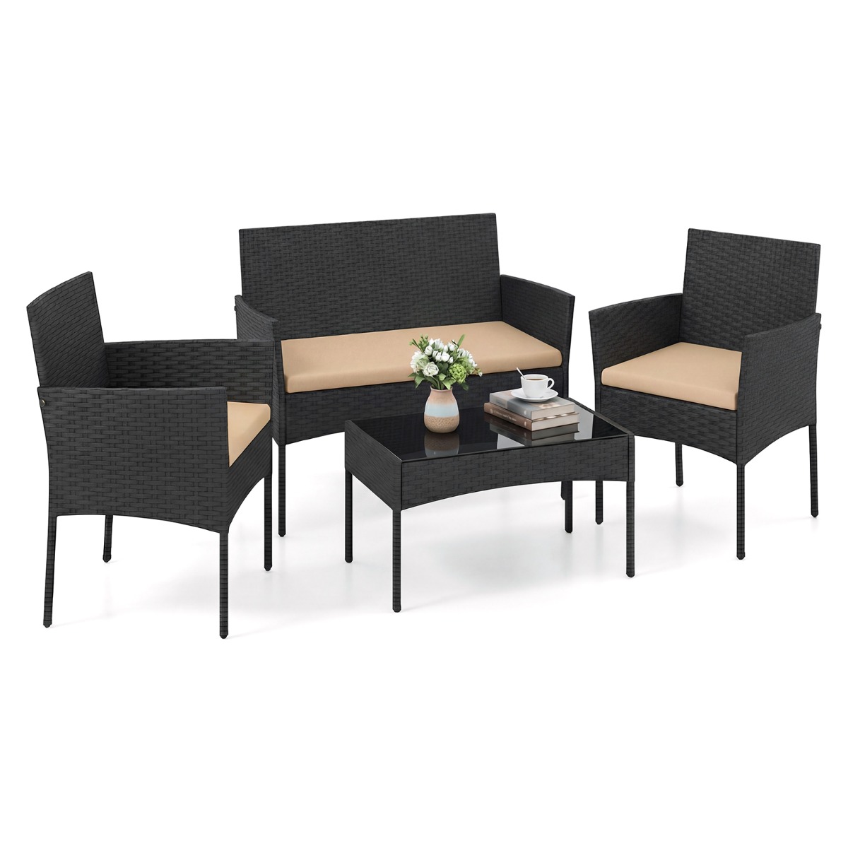 | Naam | Tuinset 4-Delige Balkonmeubelset Met Fauteuil Tuintafel En 2 Stoelen Rotan Tuinlounge Met Zitkussens Terrasmeubels Voor Buiten-Geelbruin |