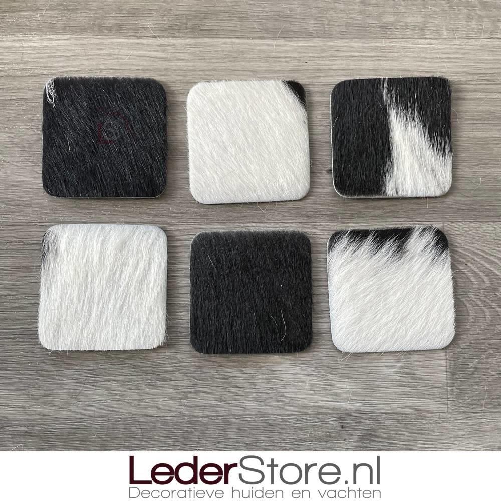 Koeienhuid Onderzetters Zwart Wit 10X10cm Ga naar Lederstore-nl