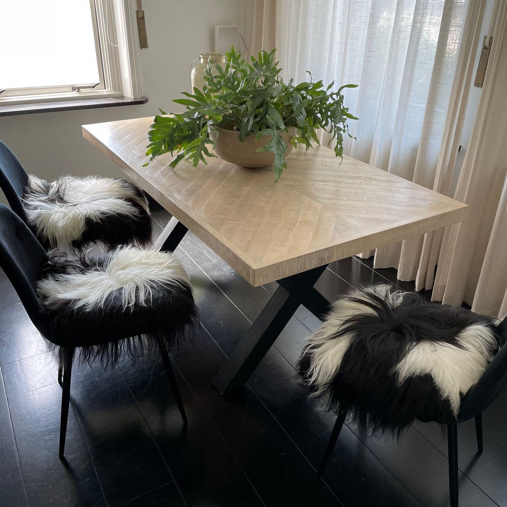 Naam | Schapenvacht Stoelkussen Zwart Wit Ijslands Vierkant 40X40cm |
