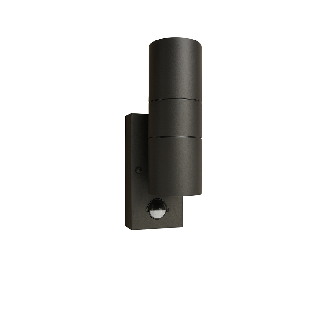 Voorzien van een GU10 fitting en compatibel met standaard lichtbronnen. Werkt op een spanning van AC 220/230Volt. Buitenlamp met PIR sensor | Bewegingsmelder | 2x GU10 fitting | IP65 | Mat zwart.