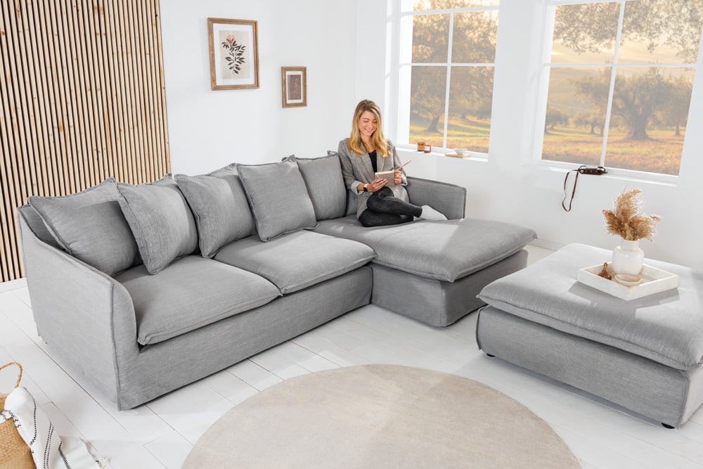 | Naam | Grote Hoekbank HEAVEN 255Cm Grijze Linnen Stof Inclusief Kussens Landelijke Stijl - 37647 |
