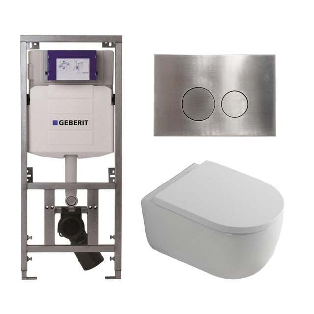QeramiQ Dely Swirl Toiletset - 36.3x51.7cm - Geberit UP320 inbouwreservoir - met Burda frame - 35mm zitting - steel bedieningsplaat - ronde knoppen - wit glans 0701131/SW706194/SW1000767/SW1026256 kopen? Sanitairwinkel.nl is dé Geberit specialist met een groot assortiment Toiletsets.