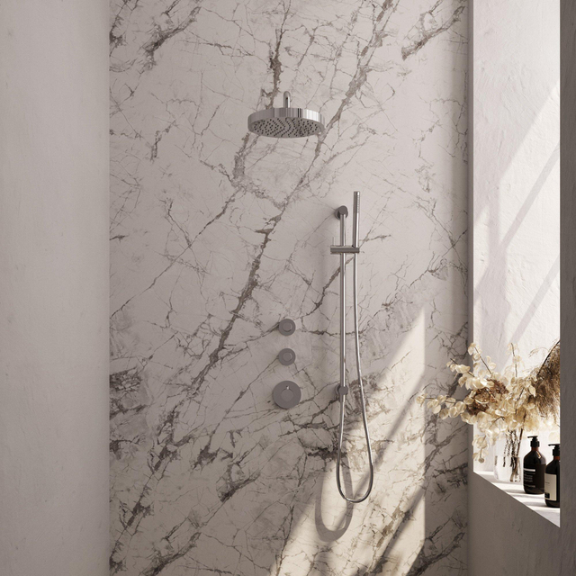 Naam | BRAUER Stripe Thermostatische Inbouw Regendouche - SET 08 - 25Cm Douchekop - Gebogen Muurarm - Staaf Handdouche - Doucheslang - Geïntegreerde Glijstang - Chroom 5-CE-379 |