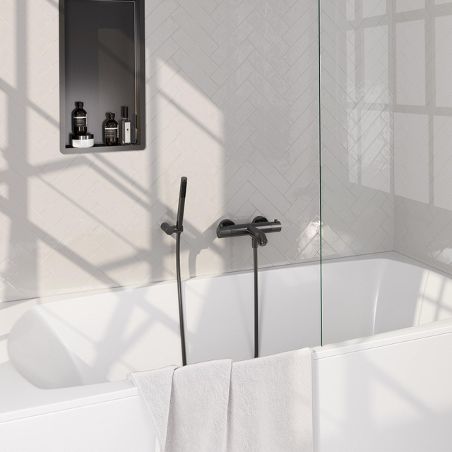 BRAUER Stripe Baddouche Thermostaatkraan - SET 03 - opbouw - wandhouder - staaf handdouche - doucheslang - gunmetal geborsteld PVD 5-GM-342 kopen? Sanitairwinkel.nl is dé Brauer specialist met een groot assortiment Badkranen.