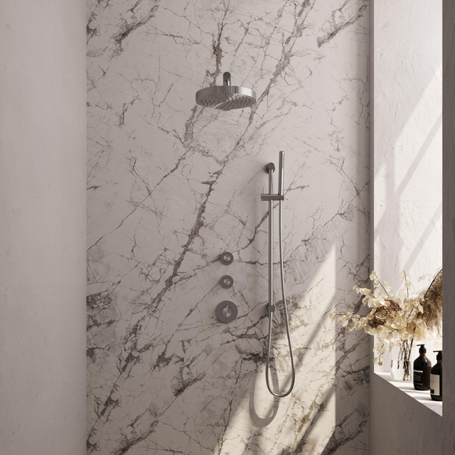 Naam | BRAUER Stripe Thermostatische Inbouw Regendouche - SET 07 - 25Cm Douchekop - Rechte Muurarm - Staaf Handdouche - Doucheslang - Geïntegreerde Glijstang - RVS-Kleurig Geborsteld PVD 5-NG-377 |