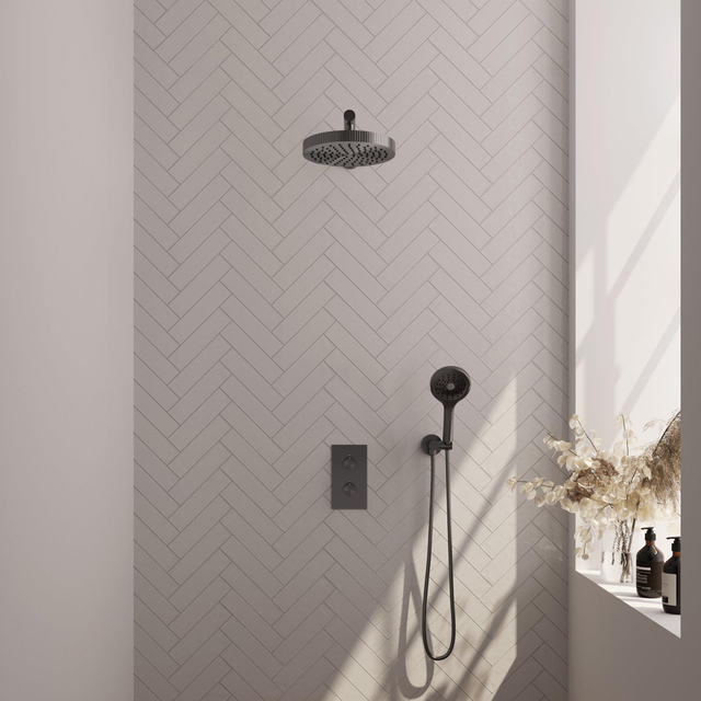 BRAUER Stripe Thermostatische Inbouw Regendouche - 3-weg - rechthoekig - 25cm douchekop - rechte muurarm - 3-standen handdouche - doucheslang - wandaansluitbocht - gunmetal geborsteld PVD 5-GM-395 kopen? Sanitairwinkel.nl is dé Brauer specialist met een groot assortiment Douchekranen.