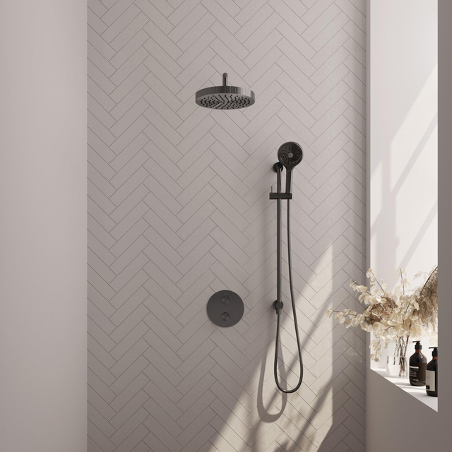 Naam | BRAUER Stripe Thermostatische Inbouw Regendouche - 3-Weg - Rond - 25Cm Douchekop - Gebogen Muurarm - 3-Standen Handdouche - Doucheslang - Geïntegreerde Glijstang - Gunmetal Geborsteld PVD 5-GM-457 |