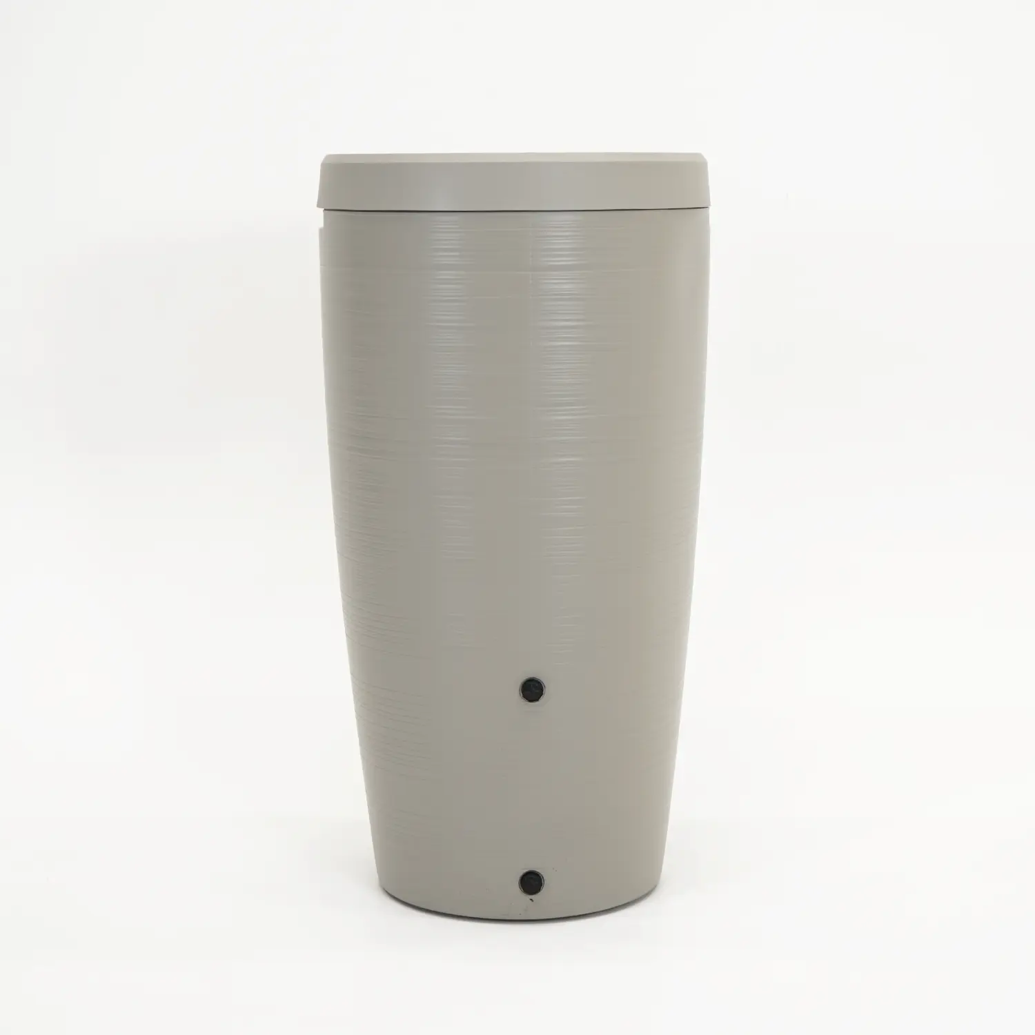 Met een hoogte van 112 cm en een diameter van 59,5 cm biedt deze regenton een inhoud van 240 liter. De lichte grijze kleur geeft een rustige, tijdloze uitstraling en past goed bij zowel moderne als natuurlijke tuinen. Deze regenton heeft het uiterlijk van een moderne plantenpot, waardoor hij niet direct opvalt als regenton. vulautomaat