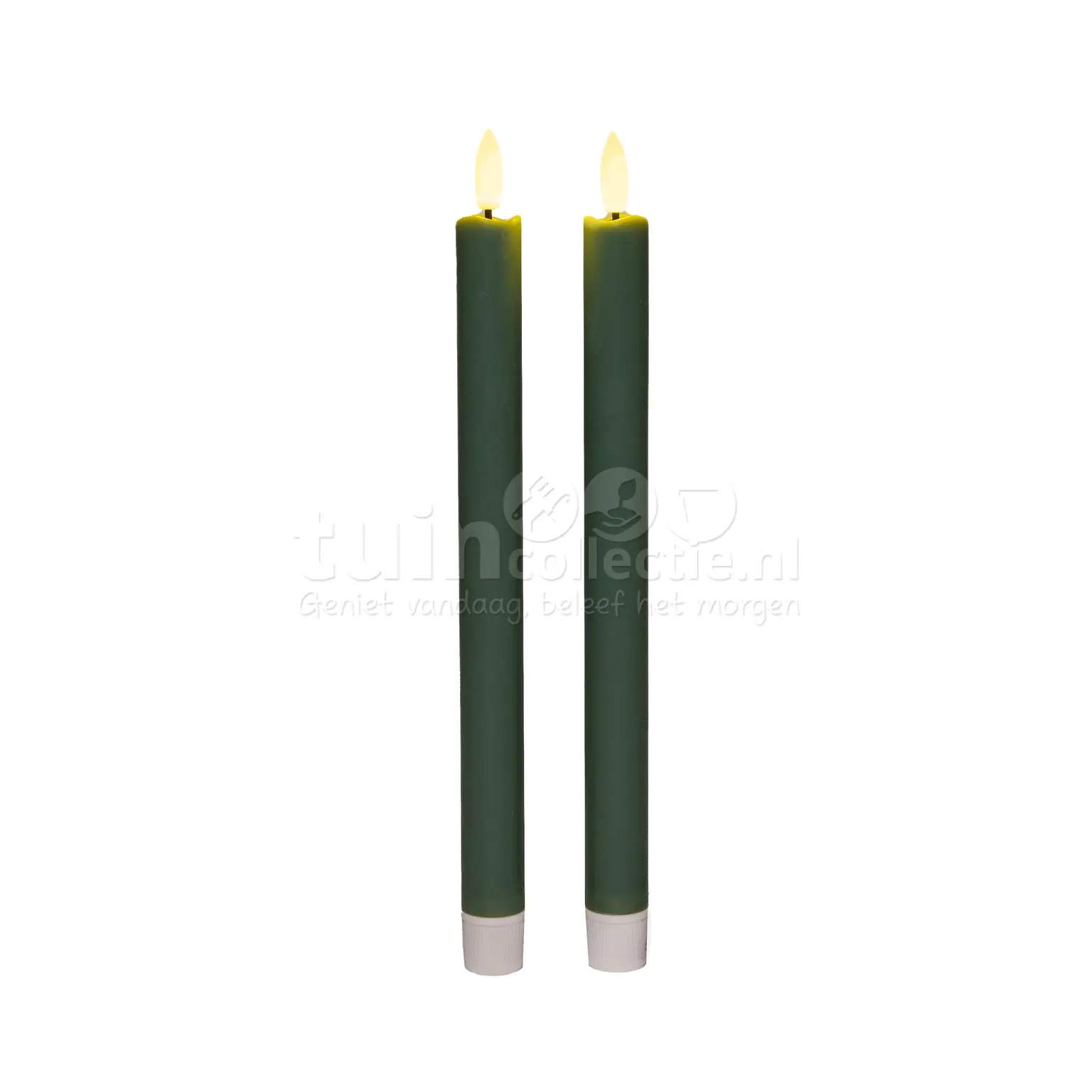 Deze set bestaat uit 2 kunststof kaarsen en zijn voorzien van een 3D vlameffect. LED Dinerkaars 26cm Jade Groen 2st
