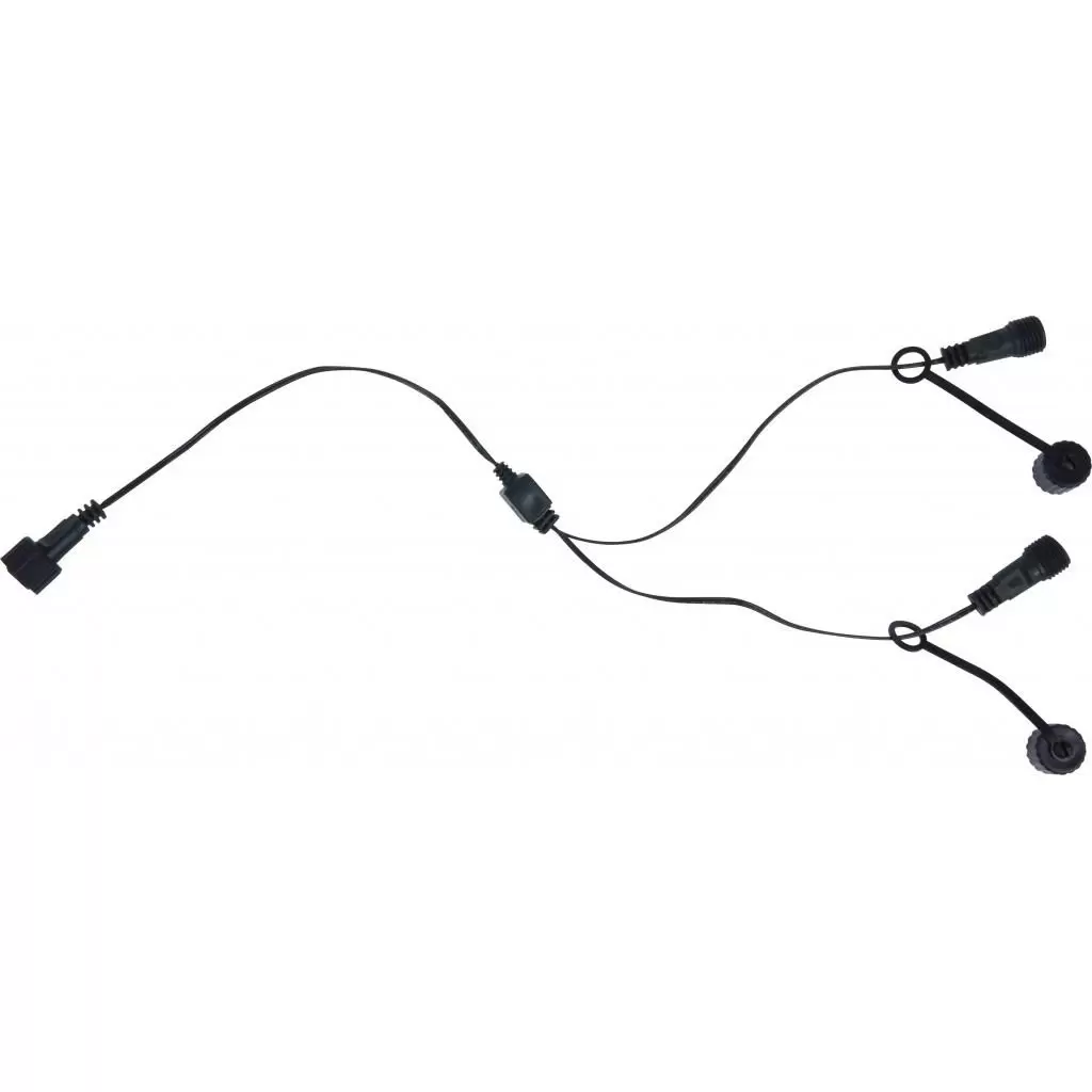 Hierdoor is er maar één stopcontact nodig, maar kun je wel van verschillende soorten lampjes in de kerstboom, guirlande of aan de dakgoot genieten. De 31 Volt T-splitter wordt aan de ene kant gekoppeld aan de adapter en aan de andere kant kunnen er twee koppelbare verlichtingssets met in totaal (maximaal) 1600 LED lampjes aangesloten worden.