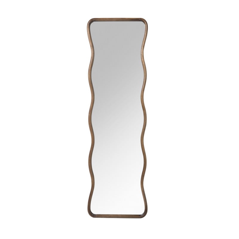 Materiaal Deze spiegel is gemaakt van MDF hout en van glas. Groot genoeg voor een full-body check én stijlvol genoeg om gewoon als decoratie te gebruiken. Dankzij het stijlvolle bruine frame en het speelse lijnenspel krijgt elke ruimte een vleugje retro met een moderne twist. Wave hello to your new favorite mirror! Deze XL spiegel met golvende rand is dé eyecatcher voor in je slaapkamer, hal of walk-in closet.