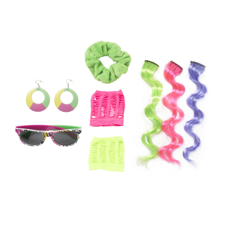Ben je klaar om terug te gaan in de tijd en de dansvloer te rocken zoals in de jaren '90? Deze feestset is precies wat je nodig hebt voor een onvergetelijk feest! Doe je beste 90s outfit aan en maak je outfit compleet met deze kleurrijke accessoires.