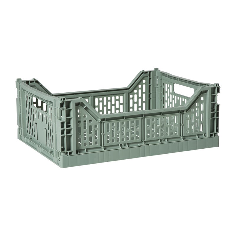 Deze grote vouwkrat in het groen is ideaal voor het opbergen van grotere items zoals tijdschriften, speelgoed of schoonmaakspullen.