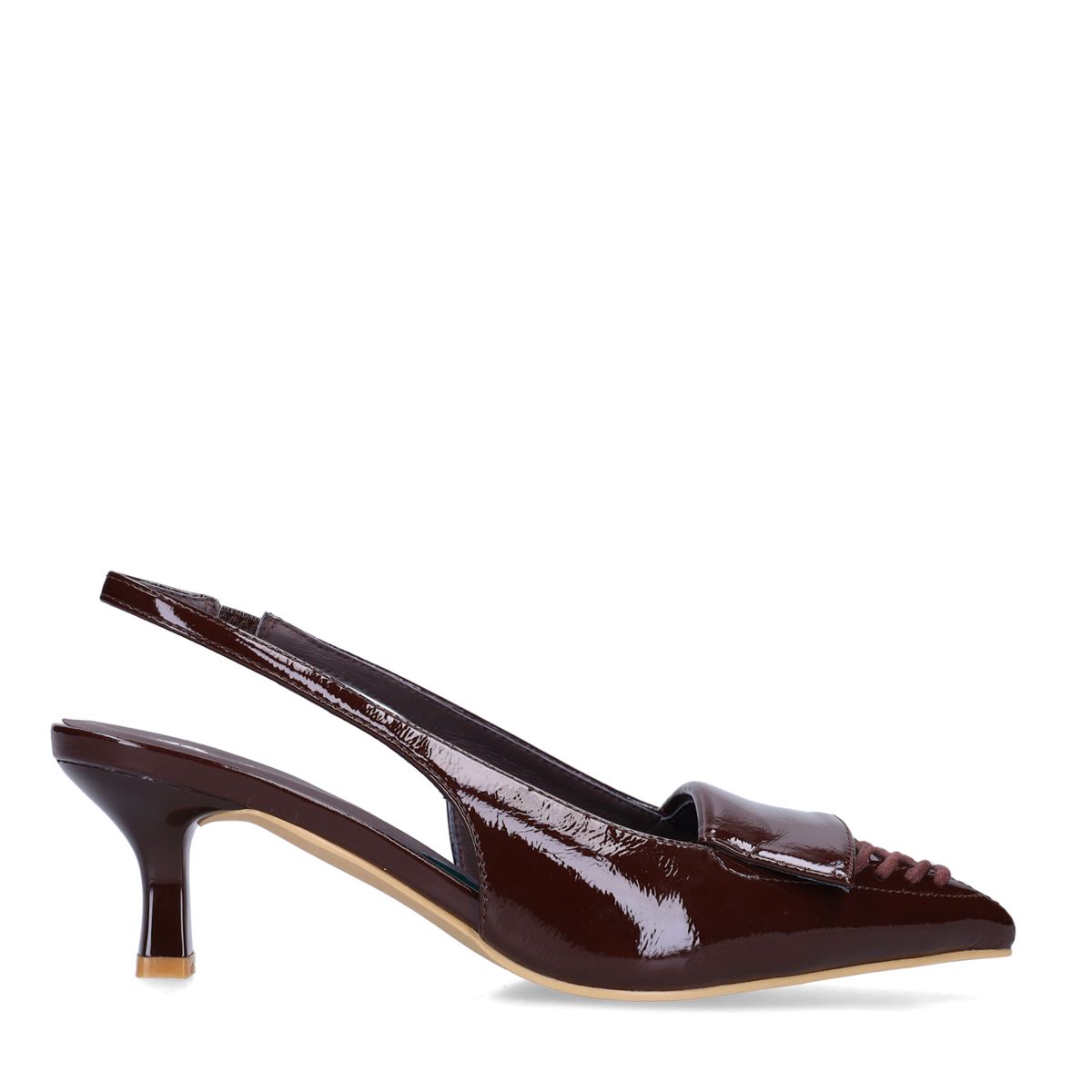 Deze bruine slingbacks van Sacha hebben een uniek design met lak finish.