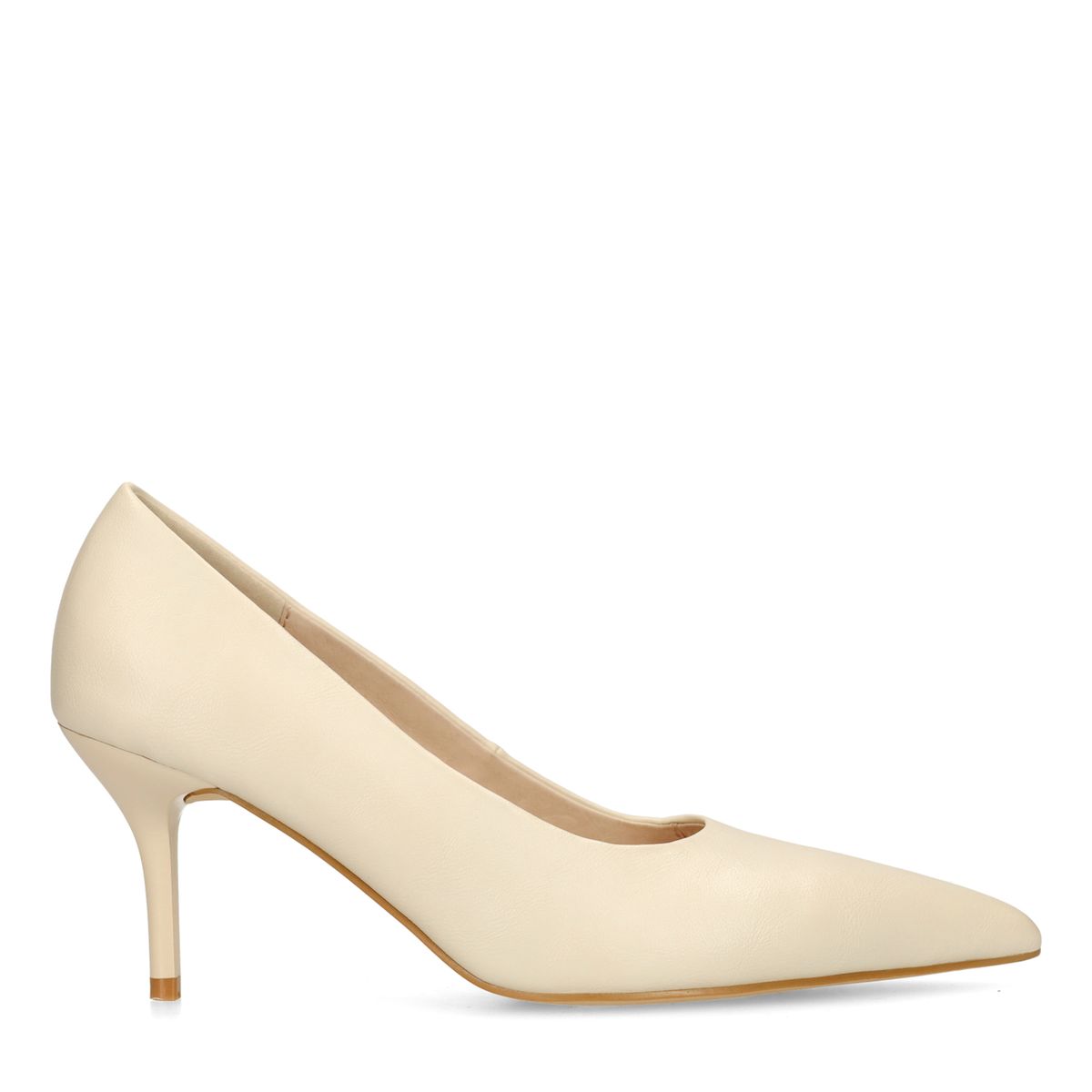 De pumps hebben een puntige neus en een naaldhak van 8 cm. Off white pumps van Sacha.