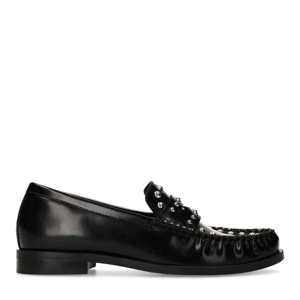 Naam | Zwarte Leren Loafers Met Zilverkleurige Studs |