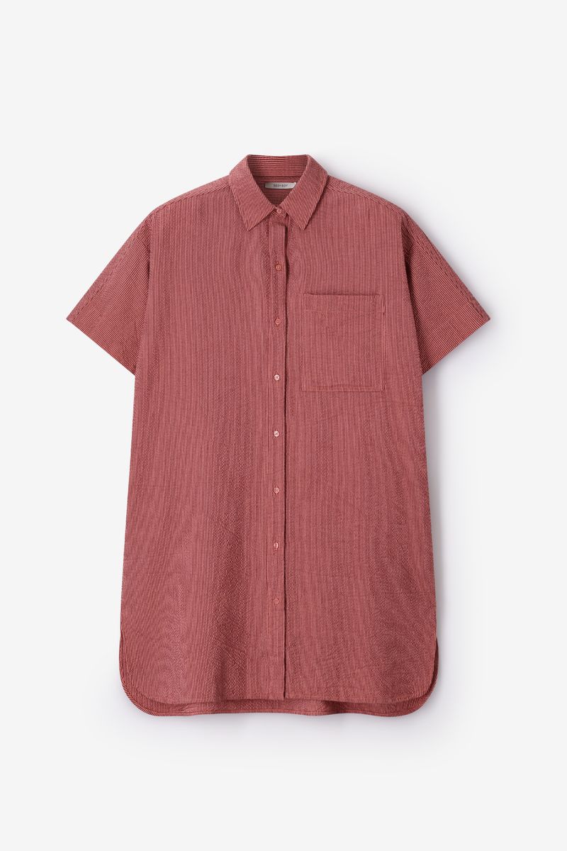 Roze gestreepte seersucker overhemd jurk van Sissy-Boy.