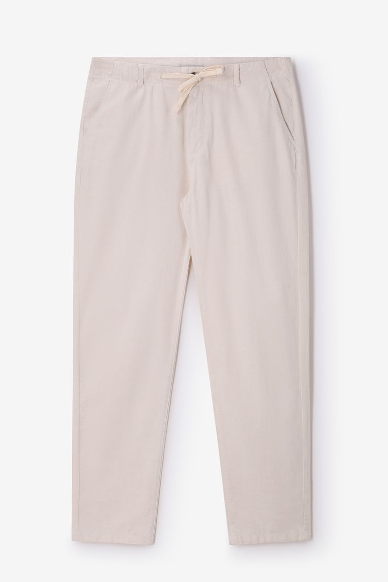 De broek heeft een middelhoge taille, een elastische tailleband met aantrekkoord, steekzakken aan de voorzijde en paspelzakken aan de achterzijde. Witte mid-rise Patriz chino van Sissy-Boy.