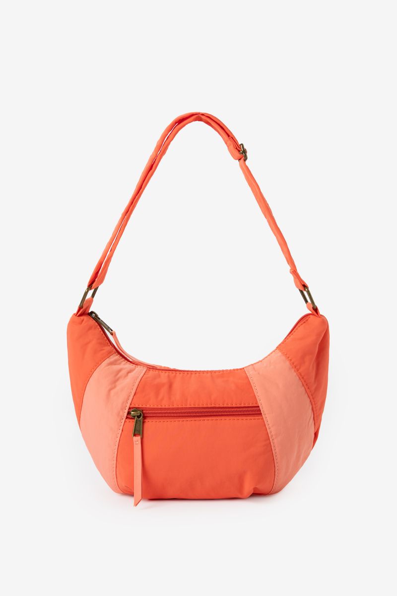Afmetingen: 31 cm x 19 cm. Verder heeft de tas een oranje kleur met een colourblock design. Door het verstelbare hengsel kun je de tas ook crossbody dragen. De tas heeft een ritssluiting, een binnenvak met rits en een hengsel dat in lengte verstelbaar is.