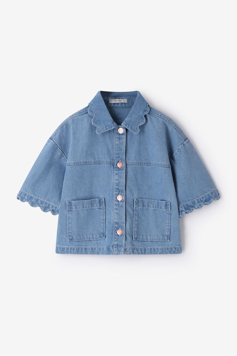 Verder heeft het jack twee opgestikte zakken aan de voorzijde, een denim kwaliteit en geschulpte randen bij de mouwen en kraag. Het jack heeft lange mouwen, een platte kraag, een knoopsluiting en een regular fit.
