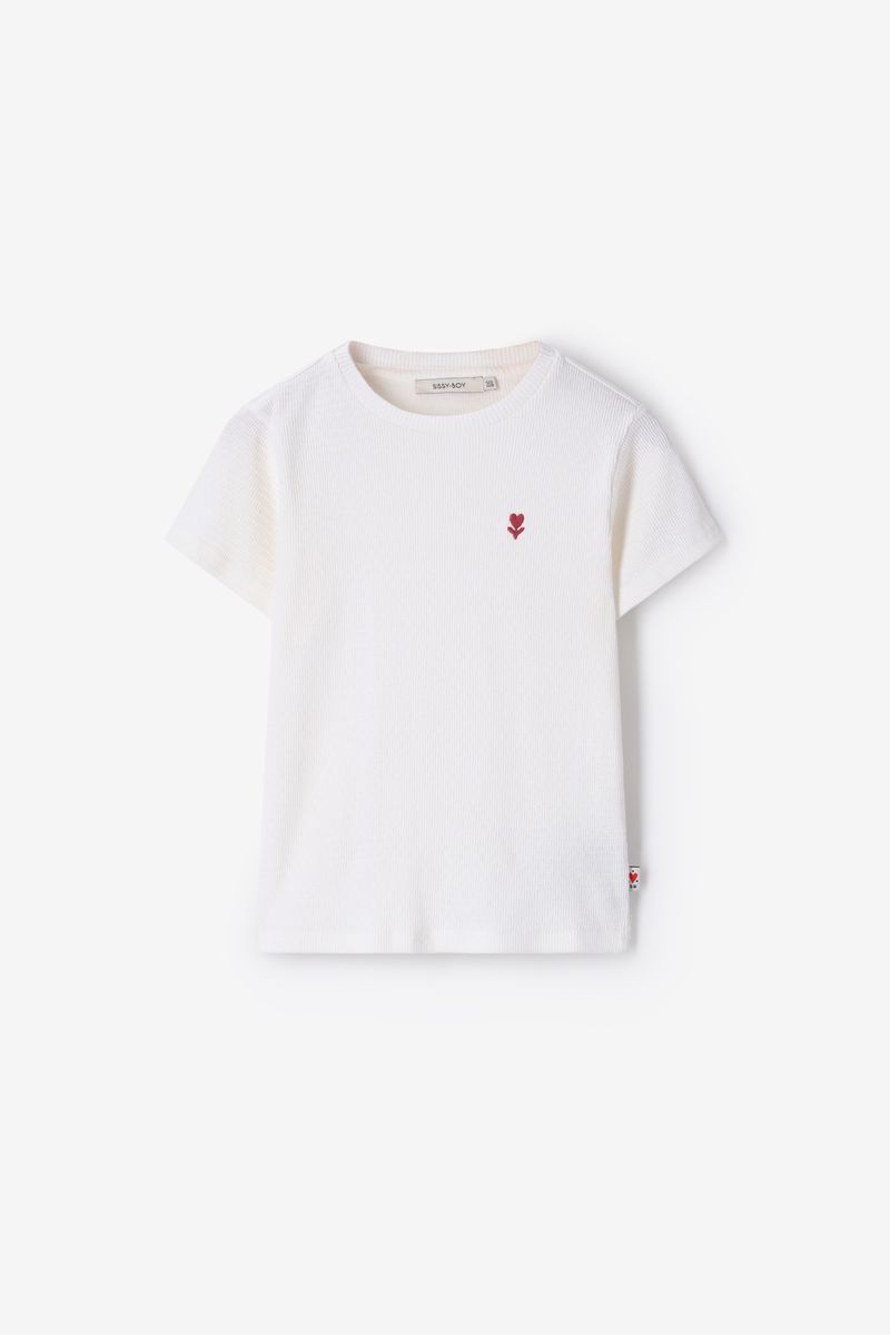 Verder heeft het T-shirt een ribkwaliteit en een embroidery detail op de voorzijde. Het T-shirt heeft korte mouwen, een ronde halslijn en een regular fit.