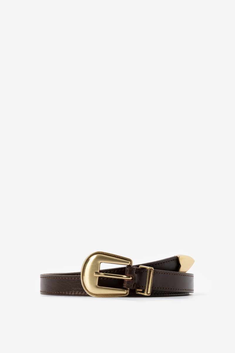 De riem heeft een zwarte kleur en een gouden gesp als sluiting. Zwarte suède riem met metalen gesp van Sissy-Boy.