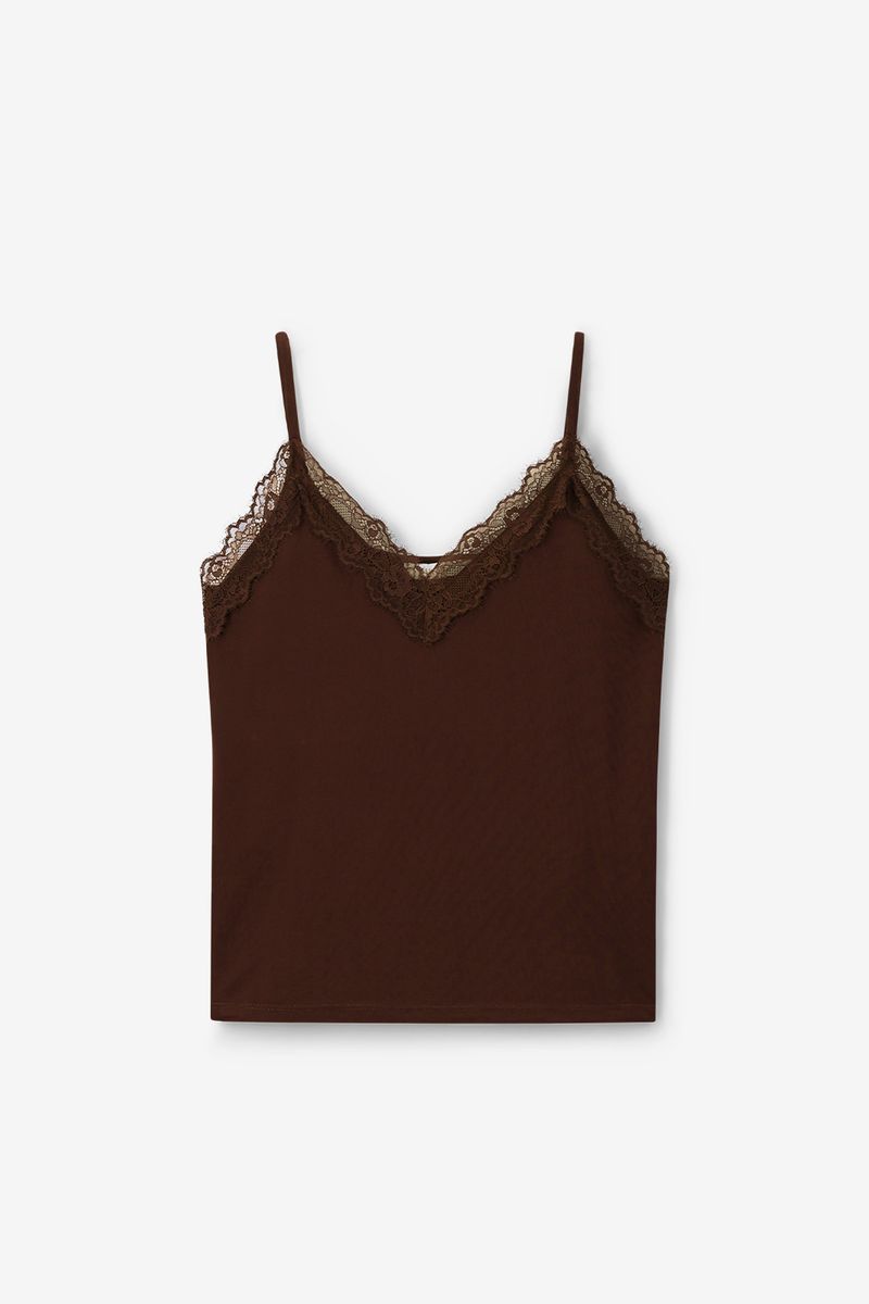 | Naam | Donkerbruin Singlet Met Kant |