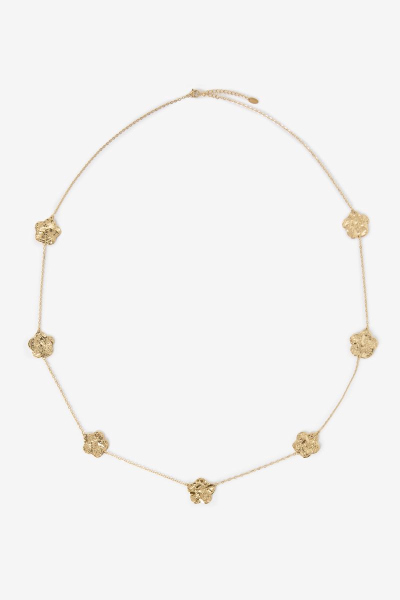 De ketting is gold plated en heeft 7 bloemen in het design verwerkt. Gold plated ketting met bloemen van Sissy-Boy.