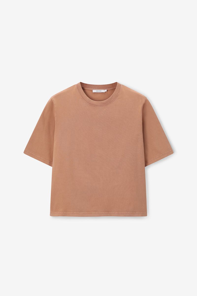 Het T-shirt heeft korte mouwen, een ronde halslijn en een relaxed fit. Lichtbruin T-shirt van Sissy-Boy.
