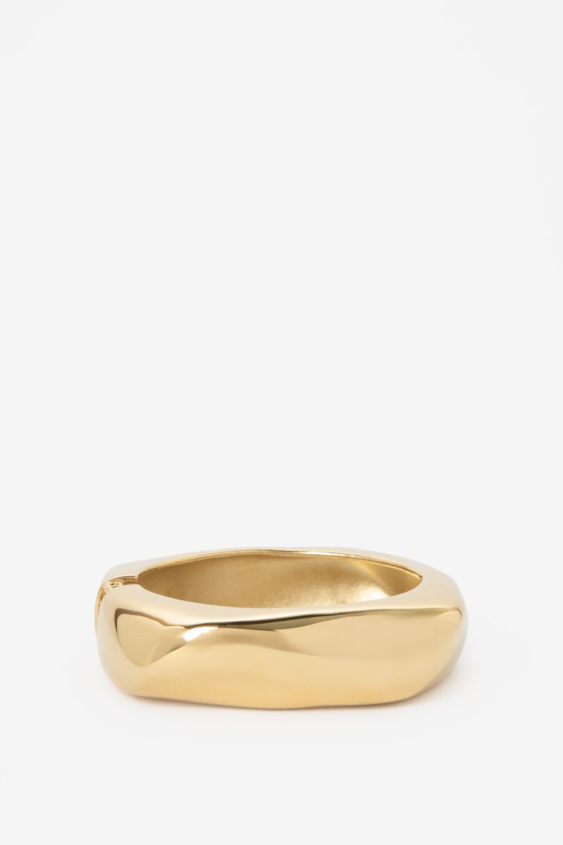 Onderhoud sieraden Sissy-Boy: Vermijd contact met cosmetica (parfum, haarlak, make-up, nagellakremover, lichaamsolie, zonnebrandolie, handgel en deodorant). Verder heeft de armband een vierkantig model. De armband is goud van kleur met een bangle model. Gouden bangle armband van Sissy-Boy.
